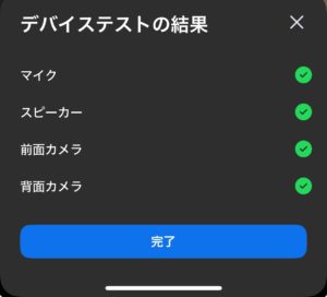 自分の声が正しく入力されているか、相手の音声が聞こえるかを画面の指示に従って確認できます。