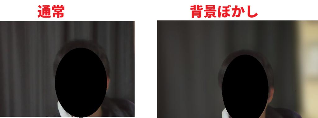 ぼかし背景は、部屋全体を別の画像に置き換えるのではなく、今いる場所を少し見えにくくする機能です。