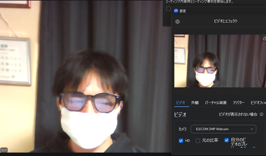 Zoomのビデオ設定【HD・元の比率・ミラーリング】の見え方の違い